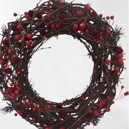 Wianek wiklinowy ze świątecznymi dekoracjami – 35 cm kod: 8604