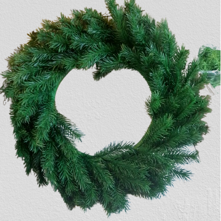 Piękny, gęsty wianek ze sztucznego świerku to klasyczna baza do świątecznych dekoracji. Świetnie prezentuje się zarówno samodzielnie, jak i ozdobiony szyszkami, bombkami czy światełkami. Idealny do powieszenia na drzwiach, w oknie lub jako element stroika na stole.