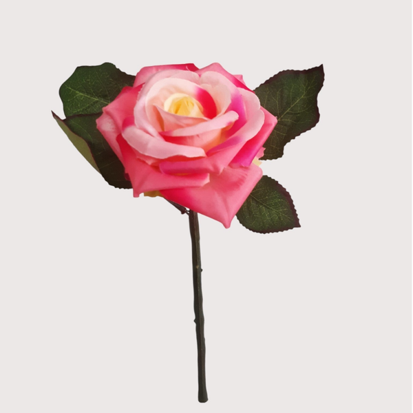 Urocza, realistyczna róża o wysokości 27 cm. Idealna do drobnych bukietów, dekoracji stołu lub jako subtelny akcent kwiatowy w aranżacjach wnętrz. Starannie wykonana, zachwyca naturalnym wyglądem i detalami płatków.
