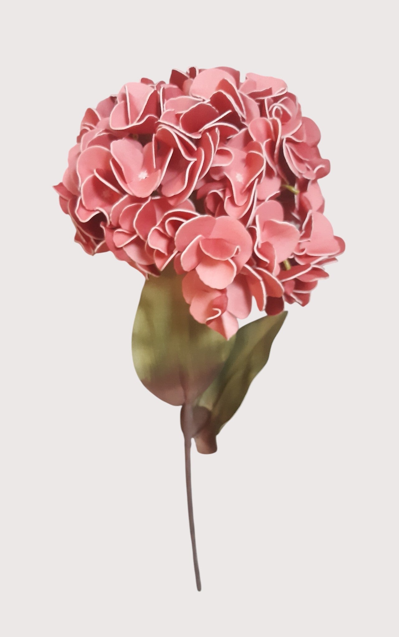 Spektakularna hortensja z pianki, która zachwyca wielkością i precyzyjnym wykonaniem. Gałązka ma 90 cm długości, a duży, pełny kwiat o średnicy około 23 cm prezentuje się niezwykle efektownie i naturalnie.