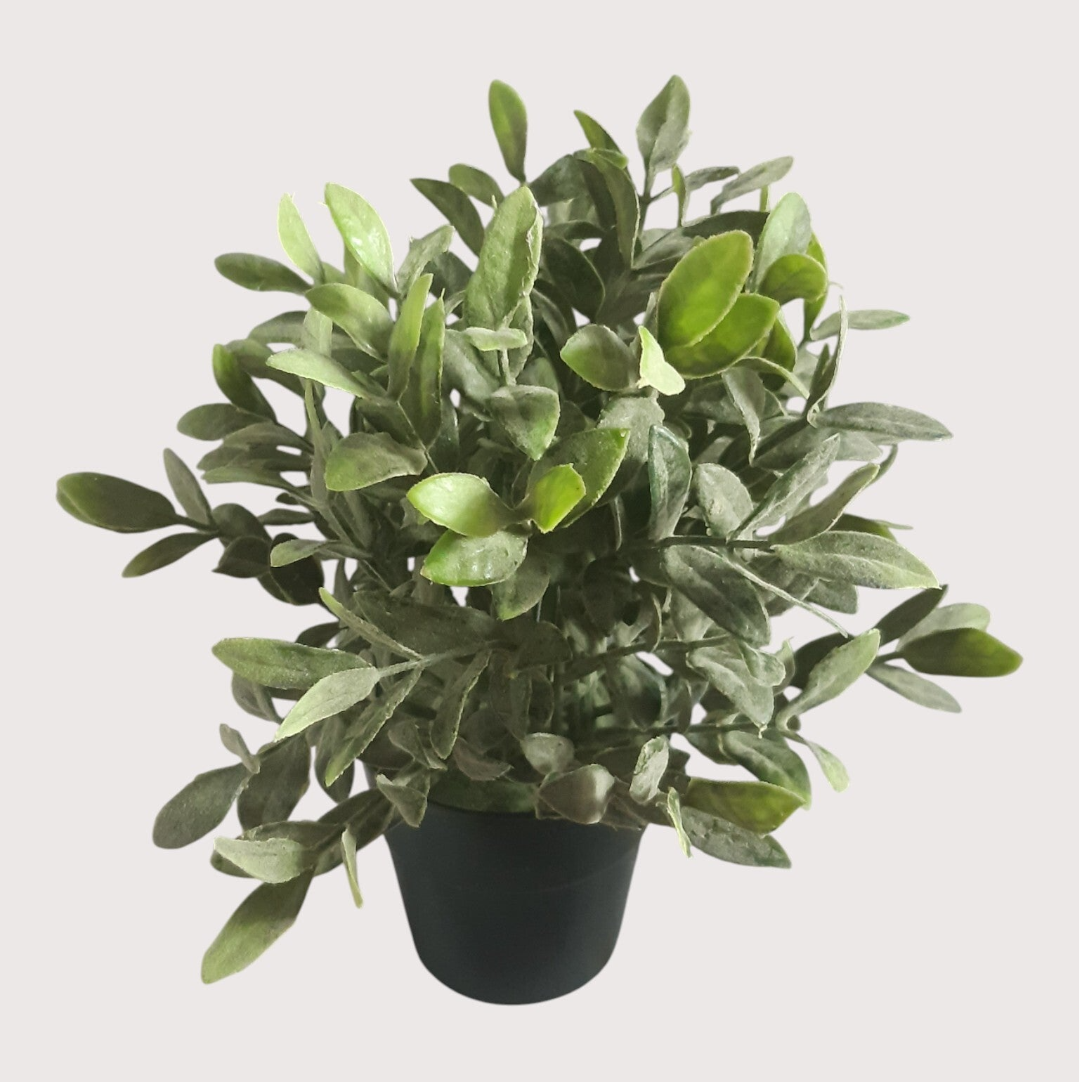 Dekoracyjny zielony krzaczek osadzony w plastikowej doniczce. Ma 23 cm wysokości i świetnie sprawdza się jako gotowa ozdoba na półkę, stolik czy parapet. Nadaje wnętrzu świeży, naturalny akcent bez konieczności pielęgnacji.