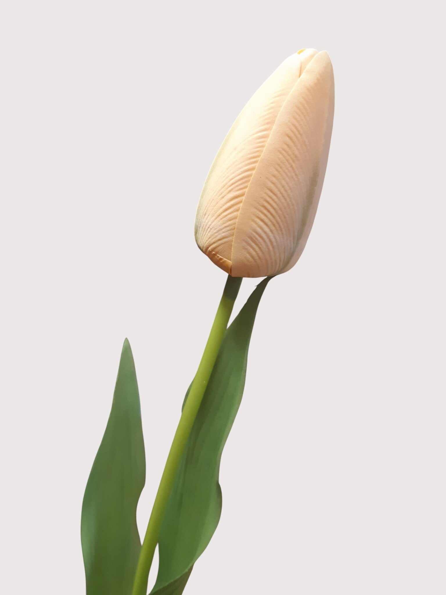 Dekoracyjny tulipan o wysokości 45 cm, wykonany z wysokiej jakości tworzywa sztucznego. Kwiat w formie pąka o średnicy ok. 6 cm wygląda naturalnie i subtelnie. Idealny do bukietów, kompozycji florystycznych oraz dekoracji wazonowych.