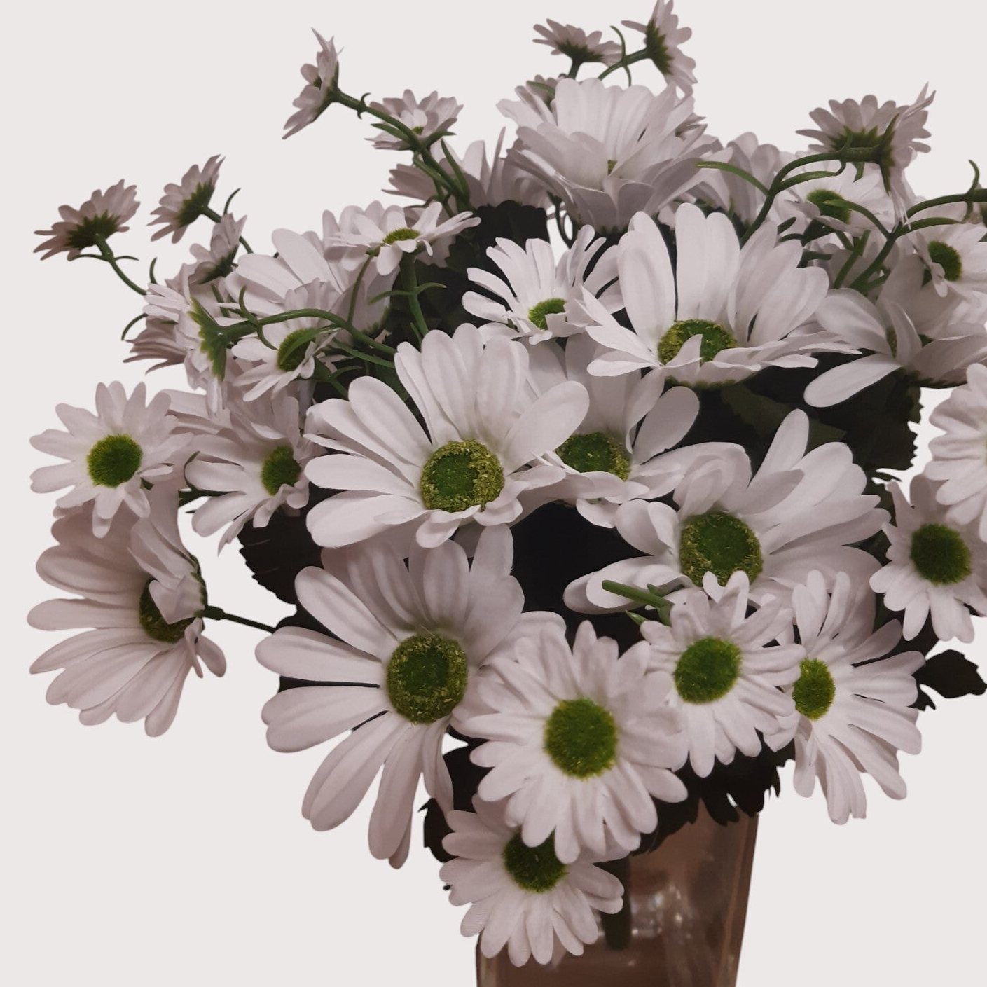 Bogaty bukiet margaretek o wysokości 40 cm, składający się z 36 kwiatów osadzonych wśród liści. Gęsta i efektowna kompozycja, idealna do wazonów, dekoracji florystycznych oraz aranżacji wiosennych i sezonowych.
