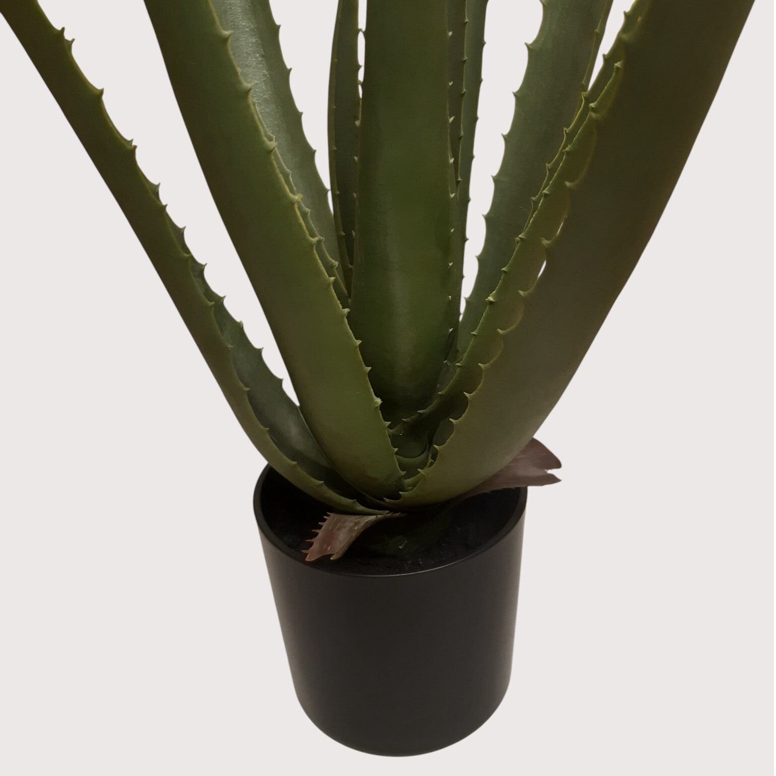 Dekoracyjny aloes o wysokości 55 cm, osadzony w plastikowej doniczce o średnicy 12 cm. Realistyczny wygląd i prosta forma sprawiają, że doskonale sprawdzi się w nowoczesnych wnętrzach, biurach oraz aranżacjach zieleni.