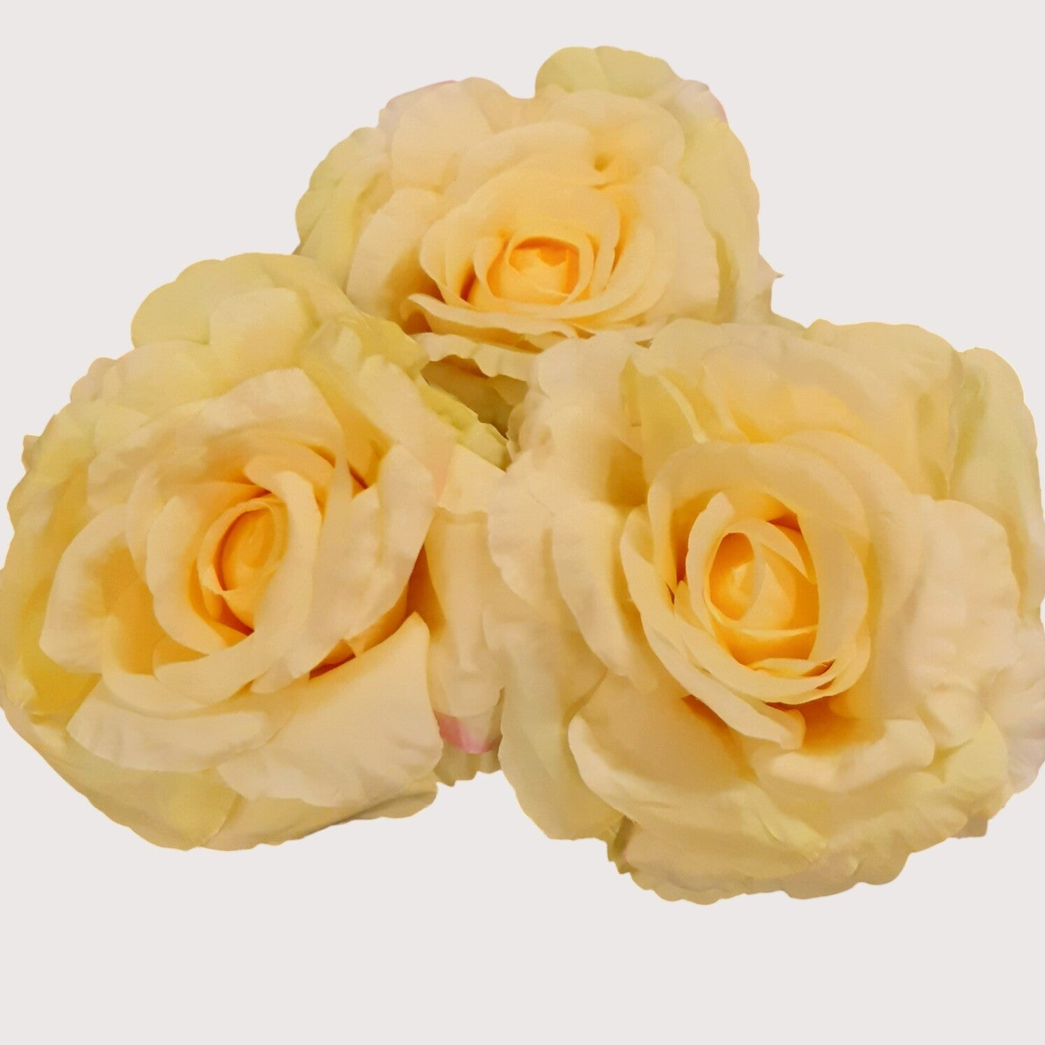 Róże wyrobowe o średnicy ok. 15 cm, w opakowaniu po 6 sztuk. Same kwiaty, bez łodyg – idealne do boxów kwiatowych, stroików, kompozycji florystycznych i projektów DIY.