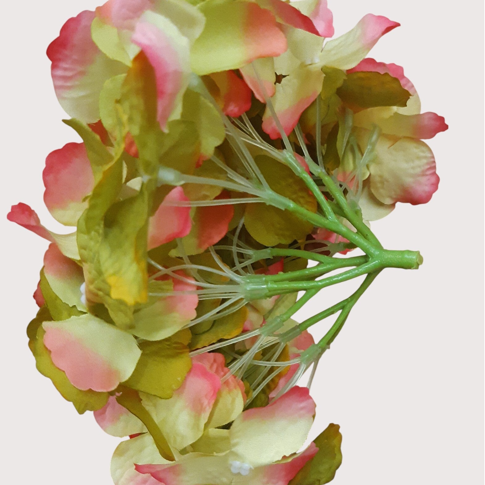 Hortensja wyrobowa wykonana z materiału, w formie samego kwiatu, bez gałązki. Duża, efektowna główka idealna do kompozycji florystycznych, boxów kwiatowych, stroików i dekoracji DIY.