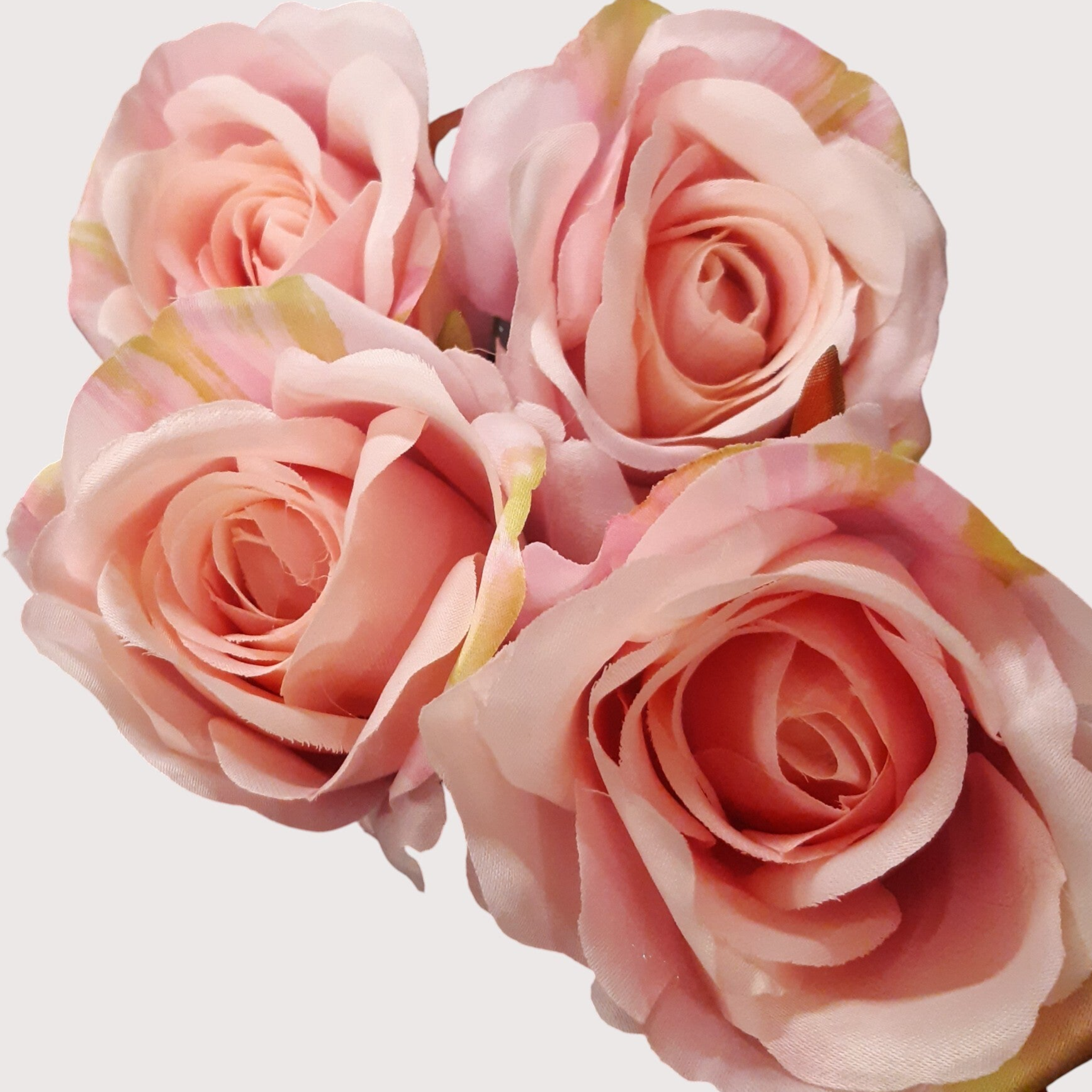 Róże wyrobowe wykonane z materiału, o średnicy kwiatu ok. 6 cm. W opakowaniu znajduje się 12 sztuk samych kwiatów, bez łodyg – idealne do drobnych kompozycji florystycznych, stroików, dekoracji i projektów DIY.