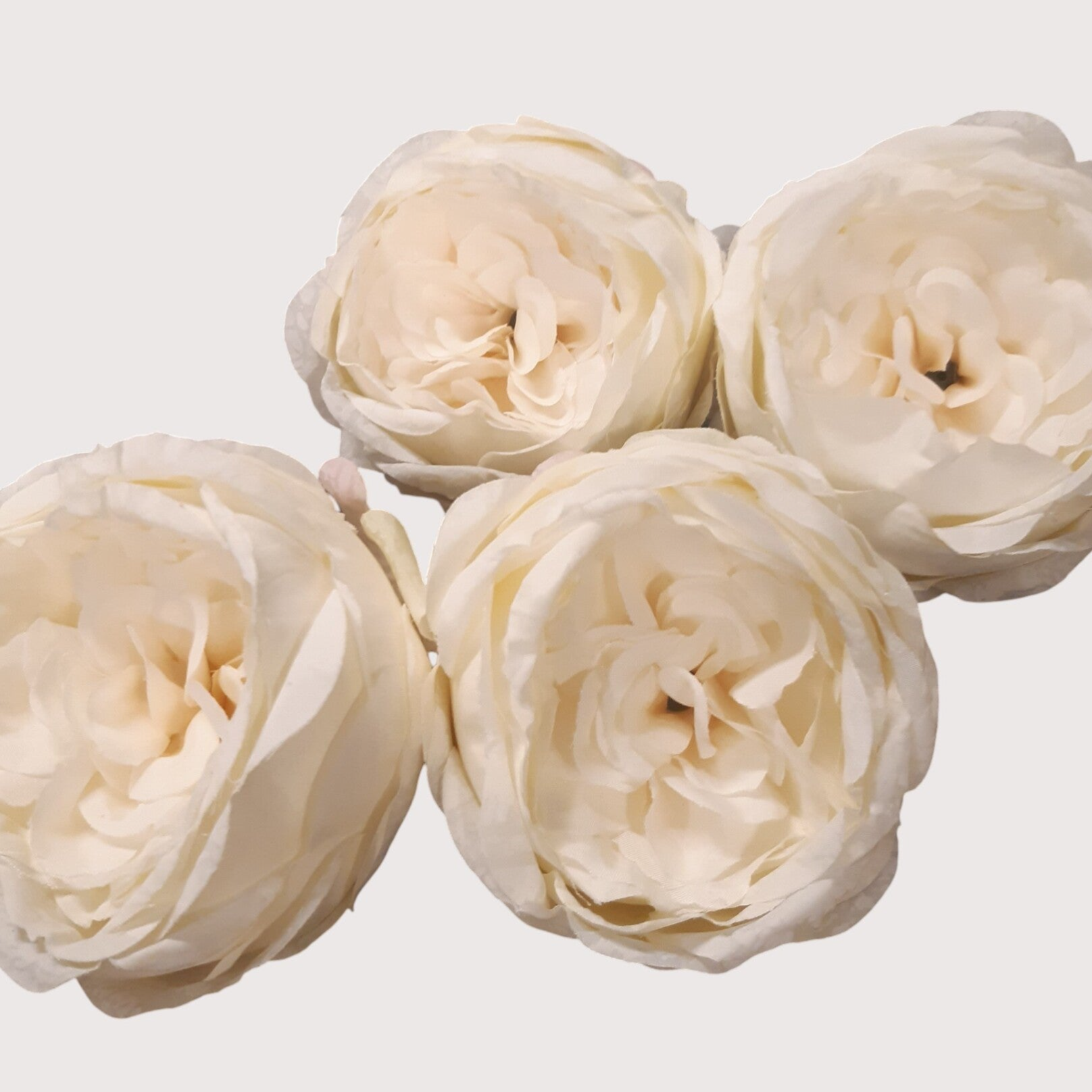 Róże wyrobowe wykonane z materiału, ze środkiem usztywnianym styropianem. W opakowaniu znajduje się 12 sztuk samych kwiatów, bez łodyg – idealne do kompozycji florystycznych, stroików, boxów kwiatowych i dekoracji DIY.