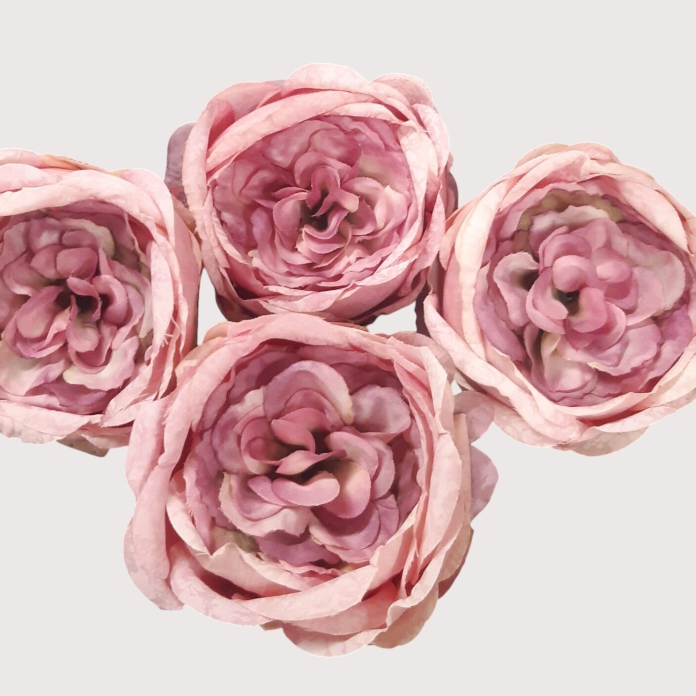Róże wyrobowe wykonane z materiału, ze środkiem usztywnianym styropianem. W opakowaniu znajduje się 12 sztuk samych kwiatów, bez łodyg – idealne do kompozycji florystycznych, stroików, boxów kwiatowych i dekoracji DIY.