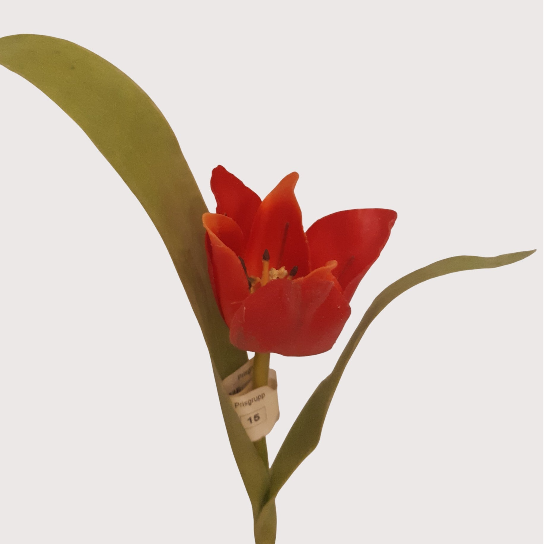 Realistyczny tulipan wykonany z silikonu, osadzony na cebulce. Idealny do wiosennych dekoracji, stroików i aranżacji florystycznych.