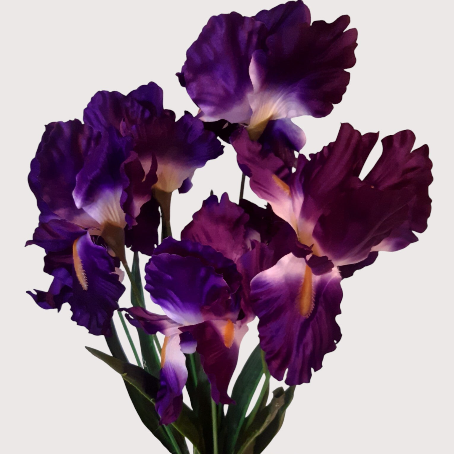 Irys – bukiet 7 kwiatów z liśćmi 60 cm, ciemny fiolet, kod: 8192