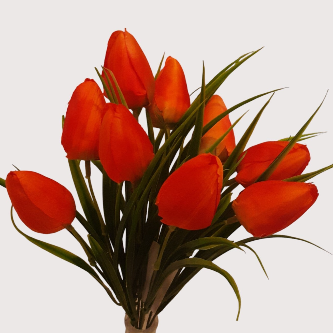 Tulipan – bukiet z trawą 9 kwiatów 35 cm, pomarańczowy, kod: 2203