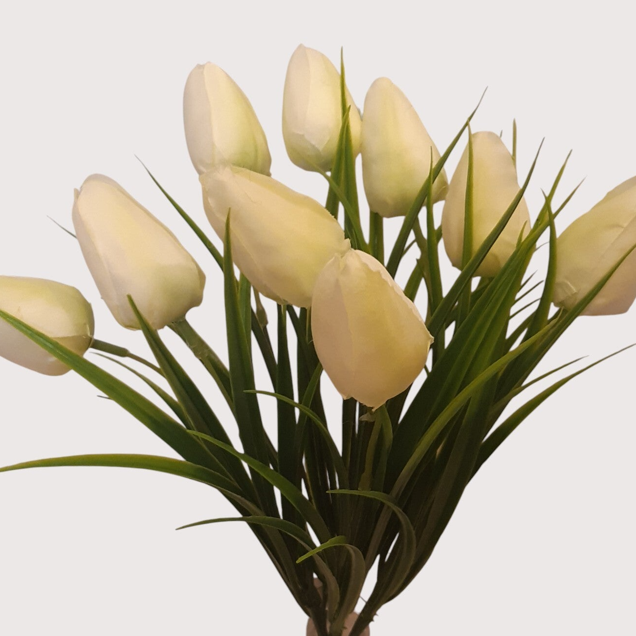 Tulipan – bukiet z trawą 9 kwiatów 35 cm, biały, kod: 2203