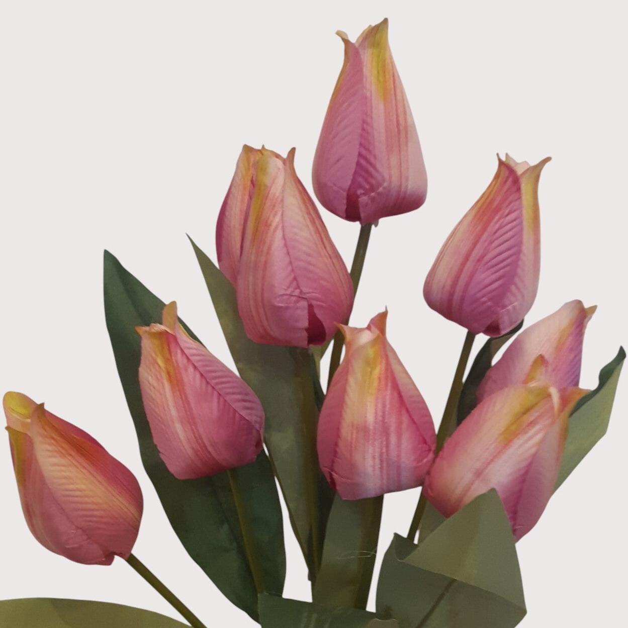 Dekoracyjny bukiet tulipanów z dziewięcioma kwiatami, o naturalnym wyglądzie.