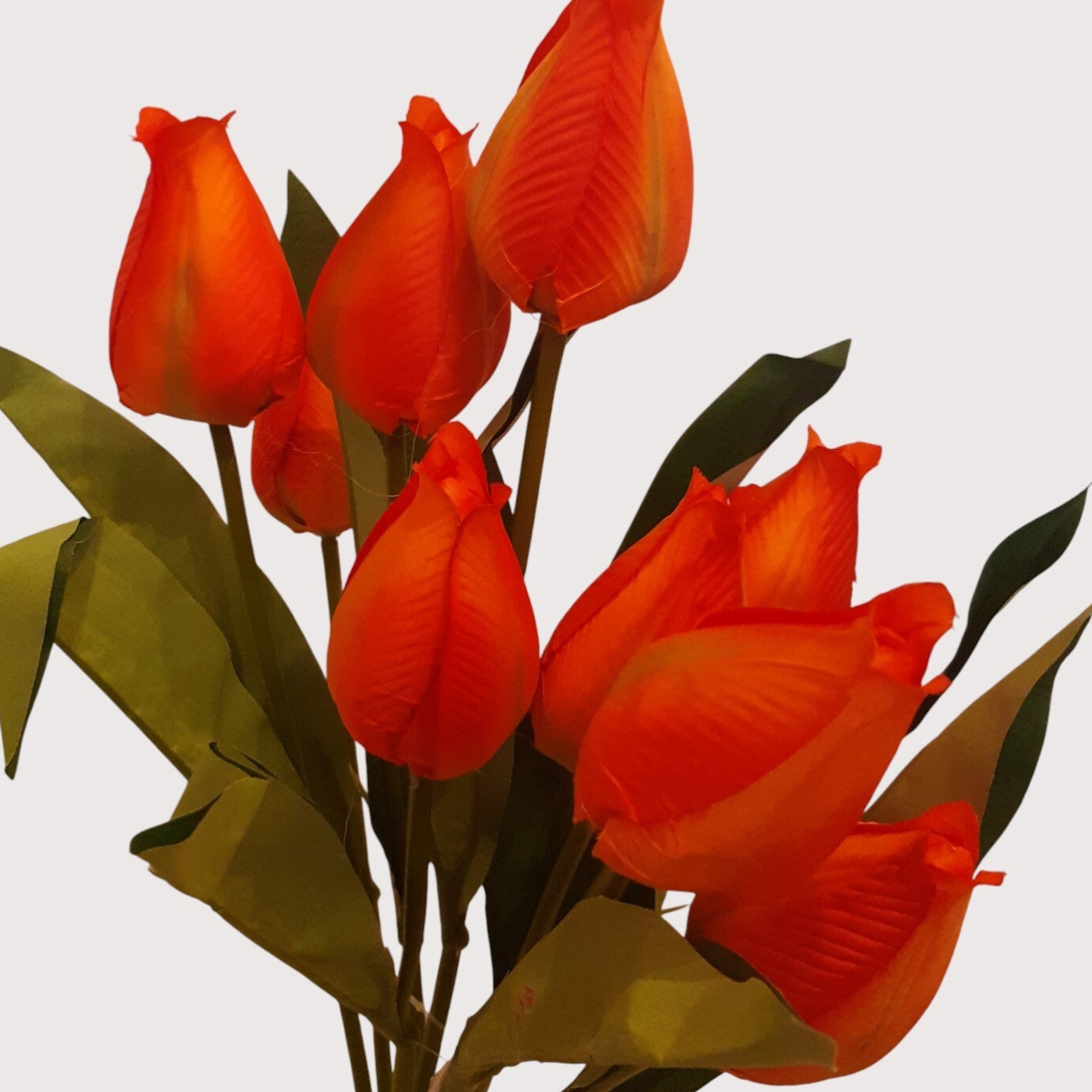 Dekoracyjny bukiet tulipanów z dziewięcioma kwiatami, o naturalnym wyglądzie.