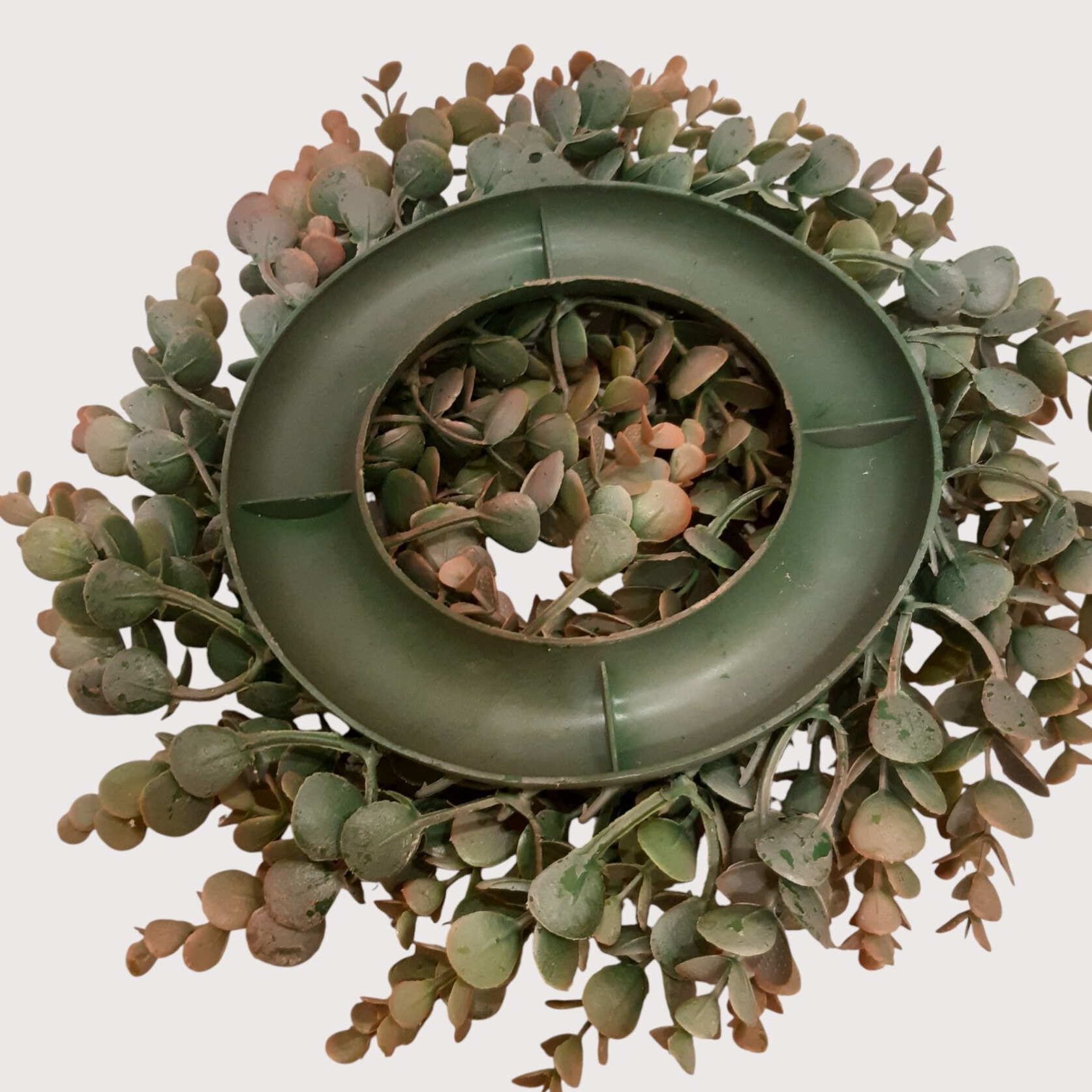 Dekoracyjny wianek z roślin z tworzywa sztucznego, przeznaczony jako baza pod kompozycje.